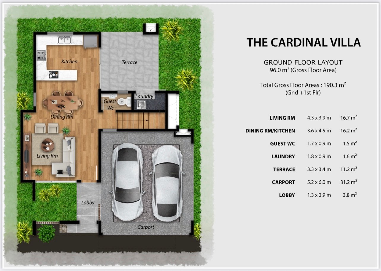 • Laundry area, terrace, carport, and welcoming lobby